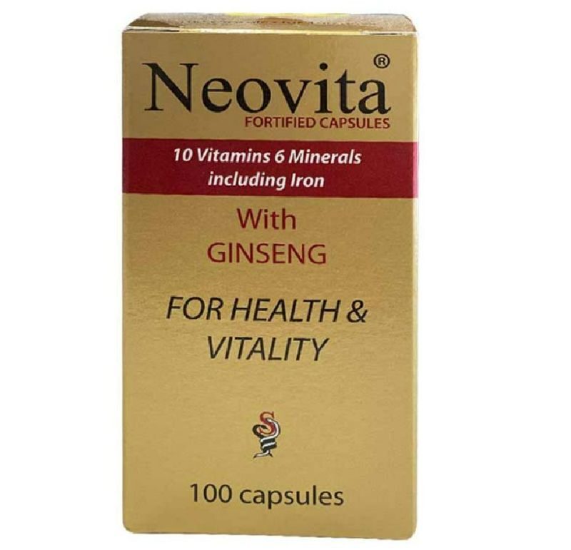 Neovita is an over-the-counter multivitamin capsule containing vitamins, minerals, and ginseng to boost energy, immunity, and relieve fatigue. It is taken once daily, preferably after meals. Not recommended during pregnancy without medical advice.