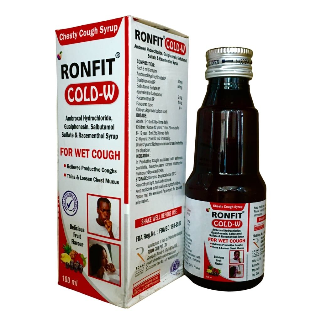 Ronfit Cold Syrup is a children’s OTC medication for treating symptoms of colds, such as fever, runny nose, and nasal congestion.